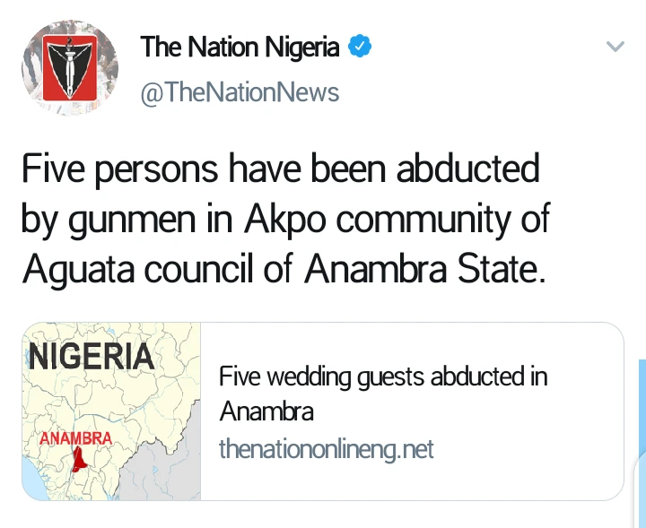 Five persons have been abducted by gunmen in Akpo community of Aguata council of Anambra State.