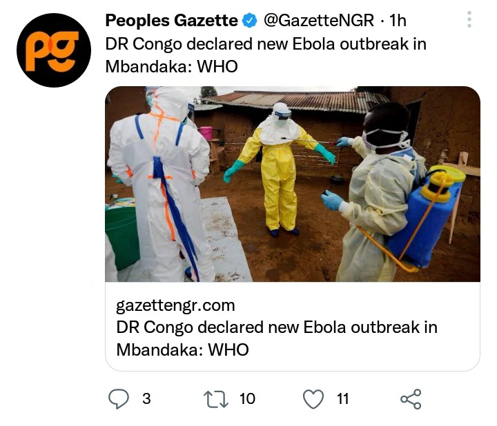 The infected patient was a 31-year-old man who began experiencing symptoms on April 5 and after more than a week of care at home, sought treatment at a local health facility.