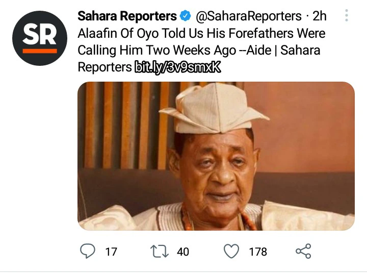 Alaafin of Oyo told us his ancestors were calling him two weeks ago -Aide