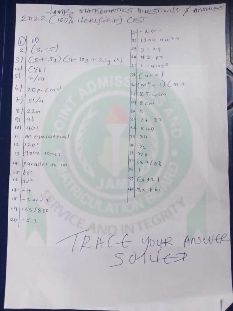 You are on this page because you want the 2022 JAMB Chemistry expo. The question and answers will be posted here during the JAMB Chemistry UTME examination. Keep checking and reloading this page for the answers.