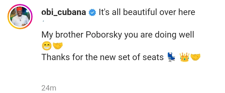 A few moments ago, fans and social media followers of one of the popular and wealthiest business moguls in Nigeria, identified as Obi Cubana (born Obinna Iyiegbu), were quick to express their reactions after he released new photos wherein he showed off the exotic interior decorations of his ultra-modern mansion, which is located in Abuja. The photos were shared on the billionaire's verified Instagram account, where he has millions of followers and admirers. The latest photos show him and his friend admiring the new sets of furniture he bought to add beauty to his sitting room.